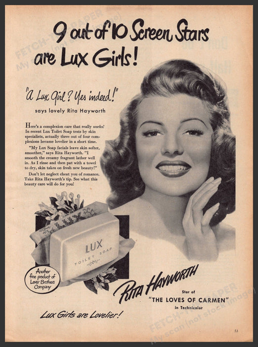 Lux Toilet Soap Rita Hayworth Actress 1940s Print Advertisement Ad 1948