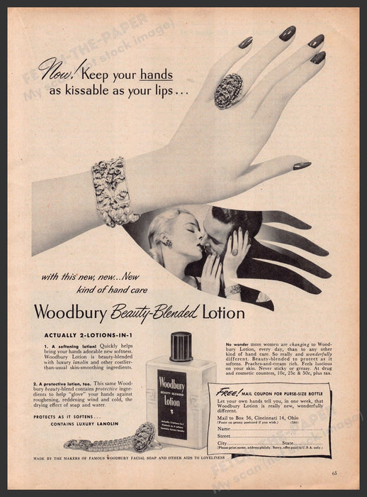 Woodbury Beauty-Blended Lotion Hands 1940s Print Advertisement Ad 1947