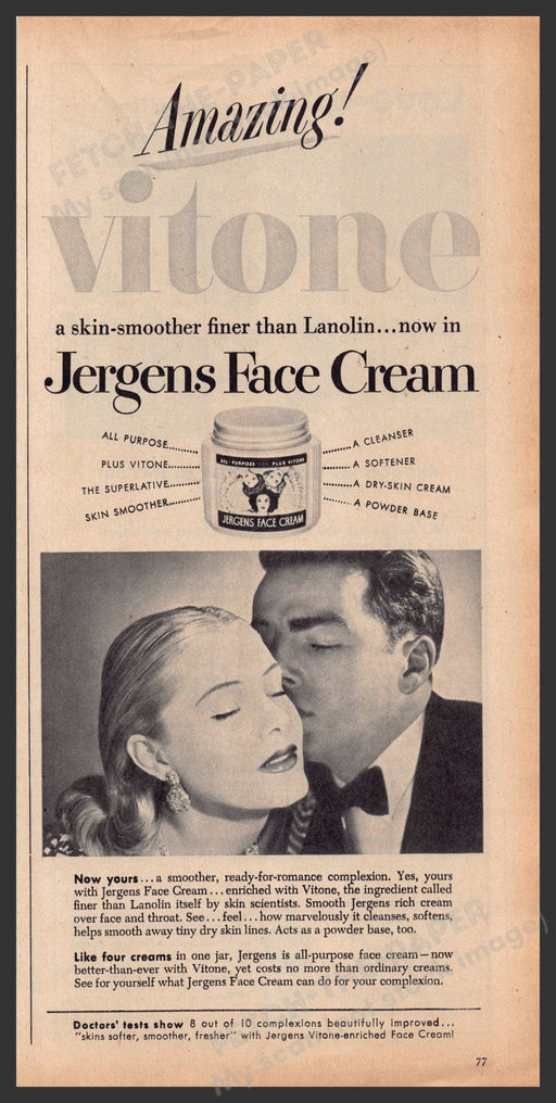 Jergens Face Cream with Vitone 1940s Print Advertisement Ad 1948