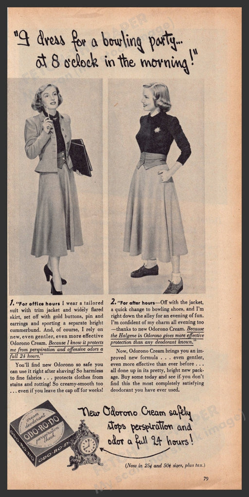 Odorono Cream Deodorant 1940s Print Advertisement Ad 1948 Bowling Party