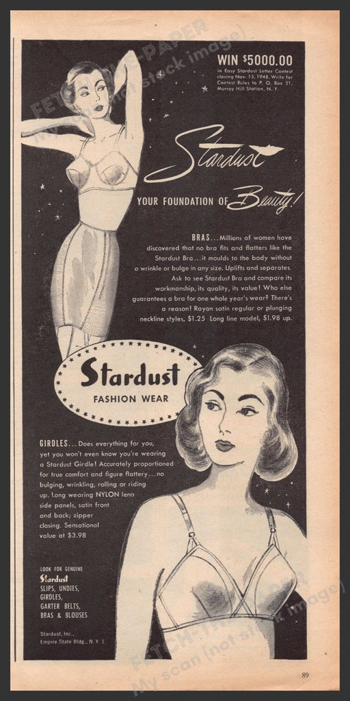 Stardust Bras & Girdles Lingerie 1940s Print Advertisement Ad 1948