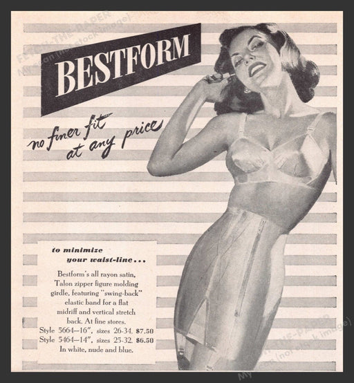 Print advertisement1948Bestform girdleMeasures approximately 5" x 5" Print advertisement only, not the featured product Original advertisement remo...