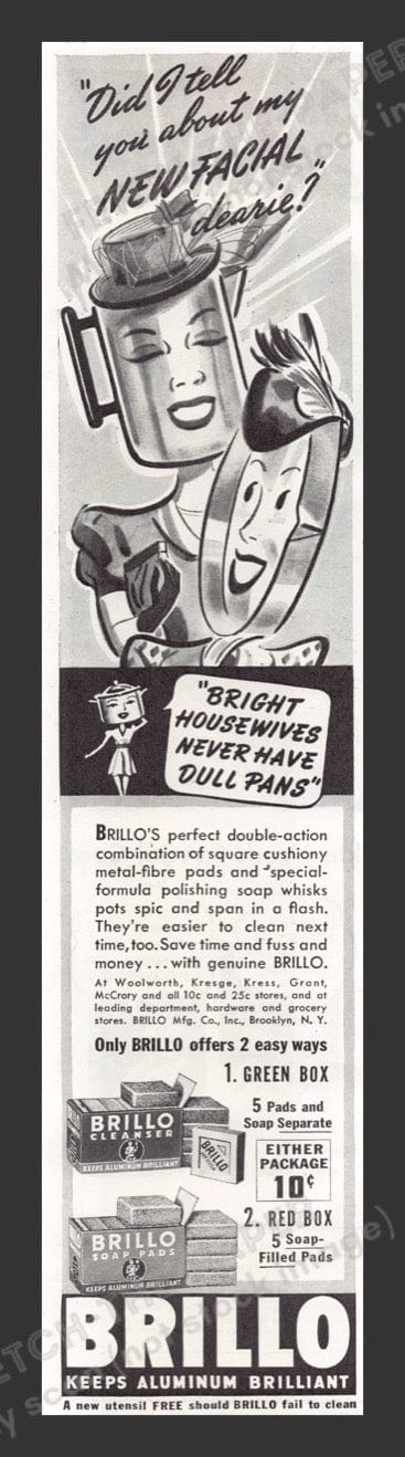 Brillo Cleaner & Soap Pads 1940s Print Advertisement 1941 Pans Cartoon