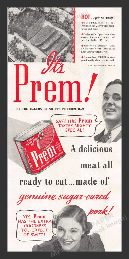 Swift's Prem Premium Brand Meat 1940s Print Advertisement Ad 1941