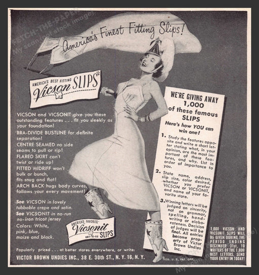 Print advertisement1948Vicsonit SlipsMeasures approximately 5" x 5" Print advertisement only, not the featured product Original advertisement remov...