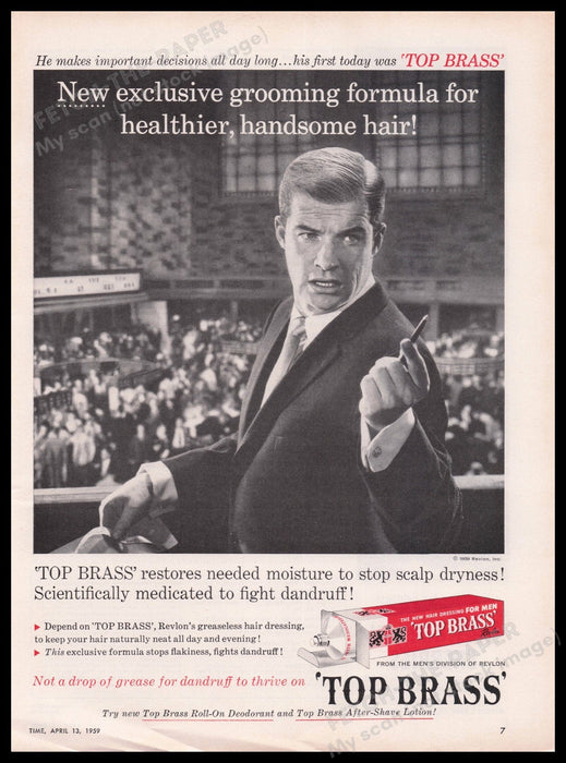 • Original 1959 Revlon Top Brass Men's Hair Products print ad