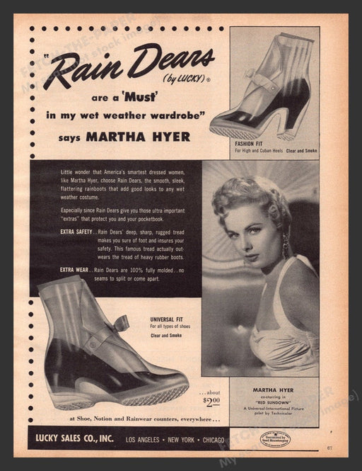 Lucky Rain Dears Shoe Covers Martha Hyer 1950s Print Advertisement Ad 1956