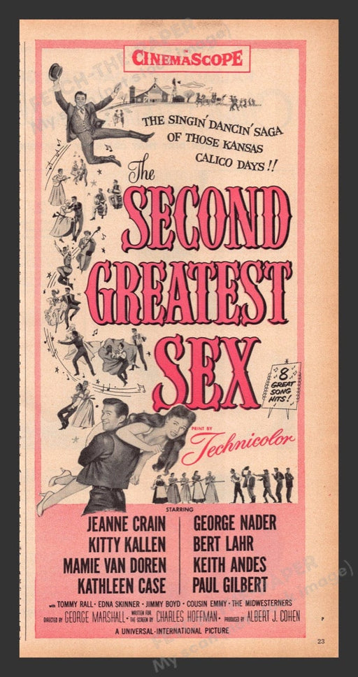 This vintage 1956 print advertisement showcases the movie "The Second Greatest Sex," a singin' dancin' saga set in Kansas during the Calico Days. T...
