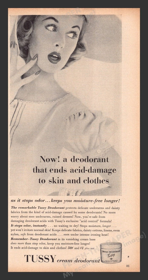 Tussy Cream Deodorant Ends Acid Damage 1950s Print Advertisement Ad 1956