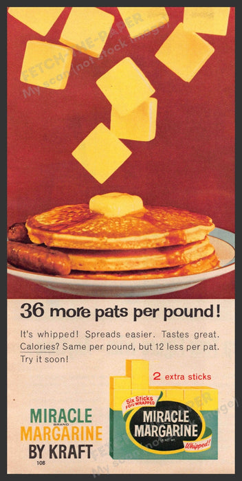 Kraft Miracle Margarine 1960s Print Advertisement Ad 1961 Pancakes