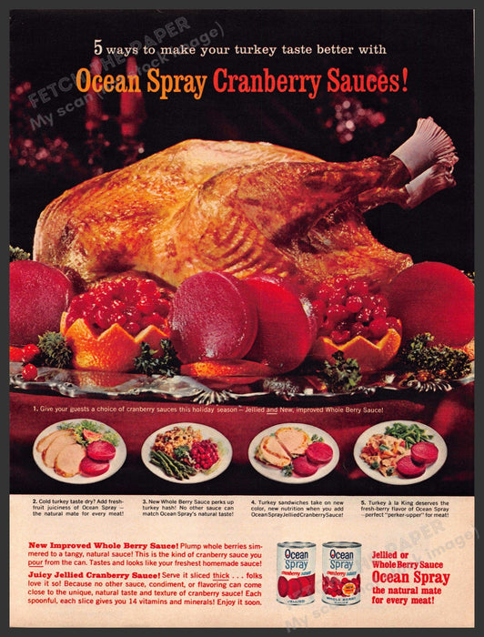 Ocean Spray 1960s Print Advertisement 1961 Cranberry Sauce Thanksgiving Turkey