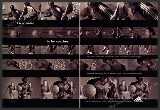 Adidas 1990s Magazine Print Advertisement (2 pgs) 1998 Basketball Shooting Shirt