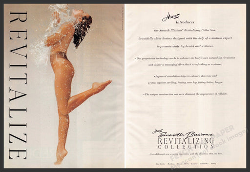 This vintage Hanes magazine print ad from 1998 showcases the Smooth Illusions® Revitalizing Collection, a beautifully sheer hosiery designed to pro...