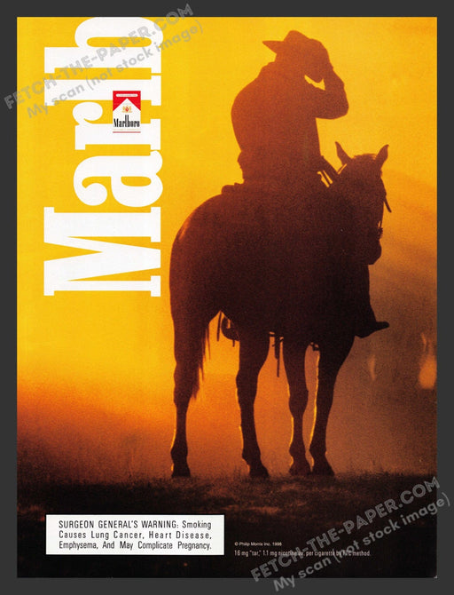 Marlboro Cigarettes Cowboy Sunset Silhouette 1990s Print Ad