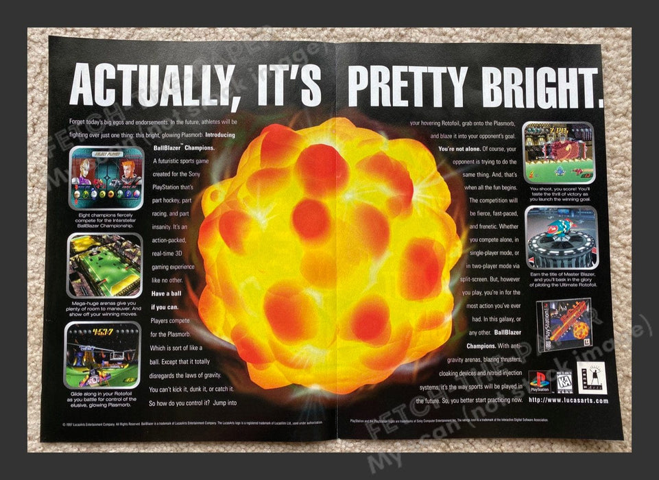 Ball Blazer Champions Fold Out 1990s Video Game Poster 10.5" x 14.75" 1997