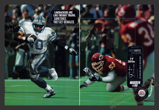 Print Advertisement1998Madden 99 Barry Sanders2 pages (may not line up exact)Measures approximately 8" x 11" (each page) Print advertisement only, ...