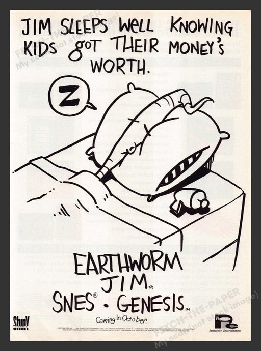 Earthworm Jim "Jim Sleeps Well" Video Game 1990s Print Advertisement Ad 1994