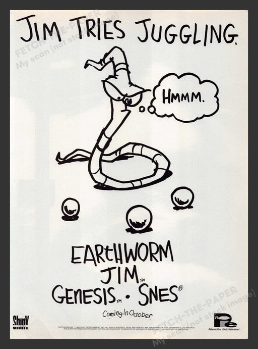 Earthworm Jim "Jim Tries Juggling" Video Game 1990s Print Advertisement Ad 1994