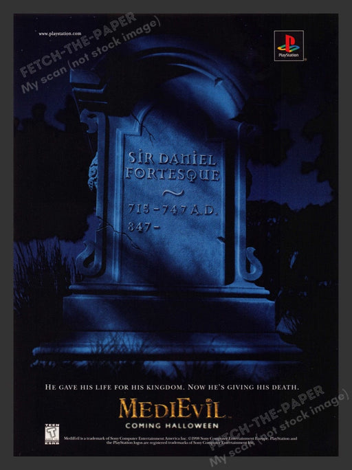 Medievil 1990s Video Game Print Advertisement Grave Stone Sir Daniel 1998