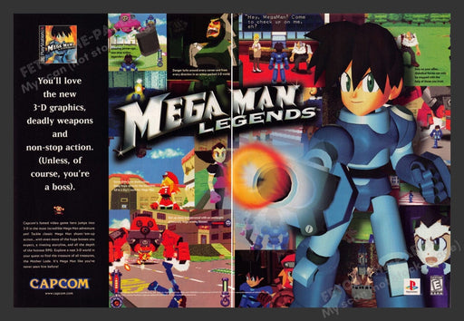Print Advertisement1998Mega Man Legends2 pages (may not line up exact)Measures approximately 8" x 11" (each page) Print advertisement only, not the...