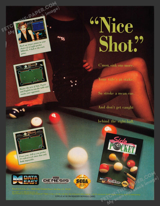 Side Pocket Billiards Video Game 1990s Print Advertisement 1992