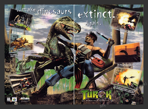 Turok "Make dinosaurs extinct again" 1990s Video Game Print Advertisement 1997