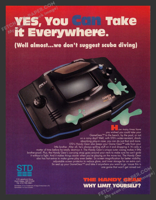 Handy Gear Joy Plus Video Game 1990s Print Advertisement 1993