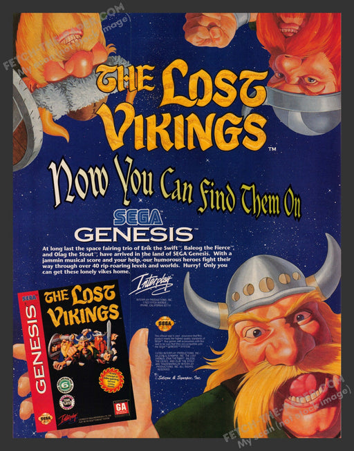 The Lost Vikings Sega Video Game 1990s Print Advertisement 1993