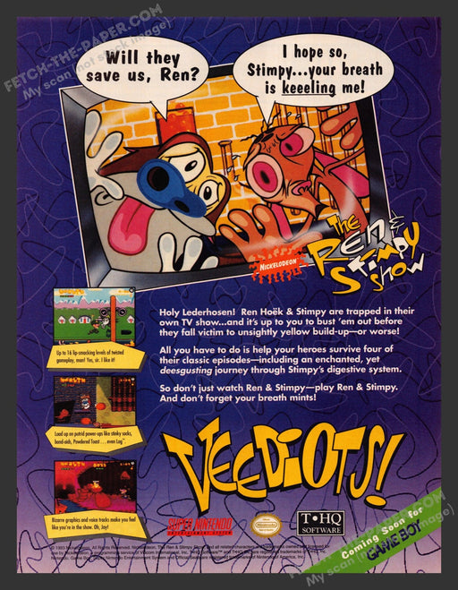 The Ren & Stimpy Show Veediots! Video Game 1990s Print Advertisement 1993