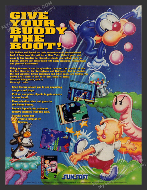 Bubble Squeak Video Game 1990s Print Advertisement Genesis 1994