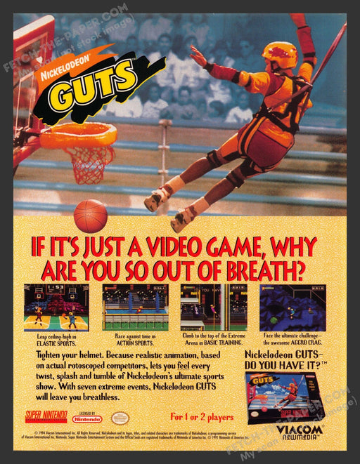 Nickelodeon Guts Video Game 1990s Print Advertisement 1994