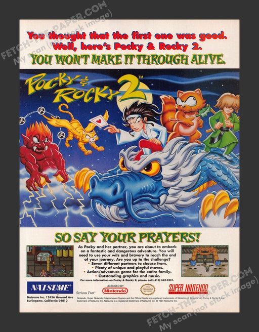 Rocky & Rocky 2 Video Game 1990s Print Advertisement 1994