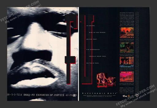 Print Advertisement1994Shaq-Fu Enforcer of Justice2 pages (may not line up exact)Measures approximately 8" x 11" (each page) Print advertisement on...