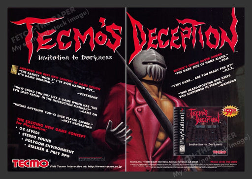 Print Advertisement1997Tecmo's Deception: Invitation to Darkness2 pages (may not line up exact)Measures approximately 8" x 11" (each page) Print ad...
