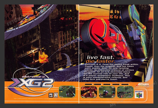 Extreme-G2 (XG2) 1990s Video Game Print Advertisement (2 Pages) 1998