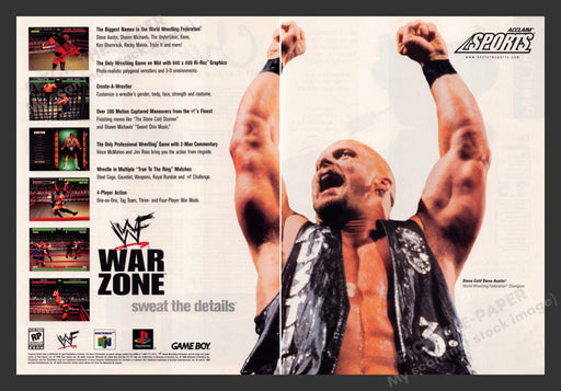 WWF War Zone Steve Austin 1990s Video Game Print Advertisement (2 Pages) 1998
