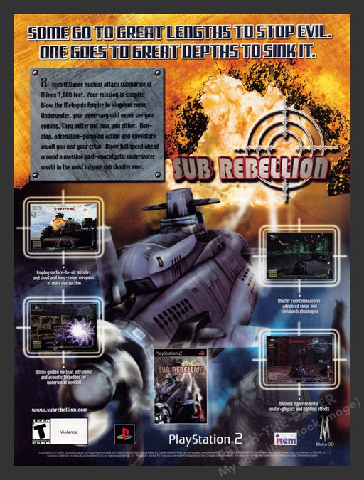 Immerse yourself in the thrilling underwater world of "Sub Rebellion" with this original 2002 video game print ad. This captivating advertisement s...