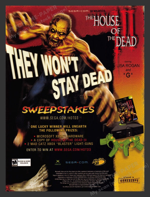 The House of the Dead "They won't stay dead" 2000s Video Game Print Ad 2002