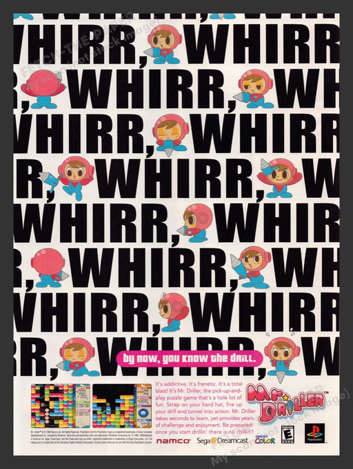 This vibrant 2000s video game advertisement for "Mr. Driller" captures the frenetic energy and addictive gameplay that defined this classic title. ...