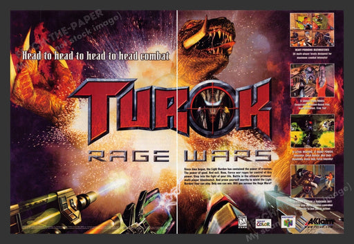Dive into the intense world of 2000s gaming with this original two-page print advertisement for "Turok: Rage Wars." This vibrant and action-packed ...