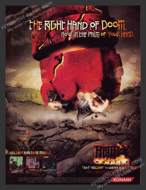 This 2008 print advertisement for the Hellboy Mobile video game captures the essence of the 2000s gaming era. The ad prominently features Hellboy's...