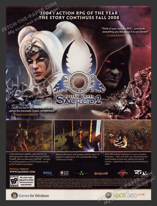This 2008 print advertisement for "Sacred 2: Fallen Angel" showcases the captivating and immersive world of this action RPG. The ad features striki...