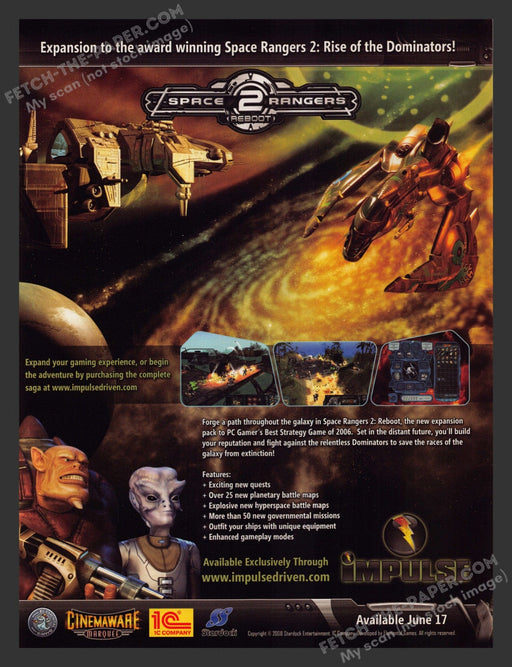 This is a 2008 magazine print advertisement for the video game "Space Rangers 2: Reboot," an expansion to the award-winning "Space Rangers 2: Rise ...