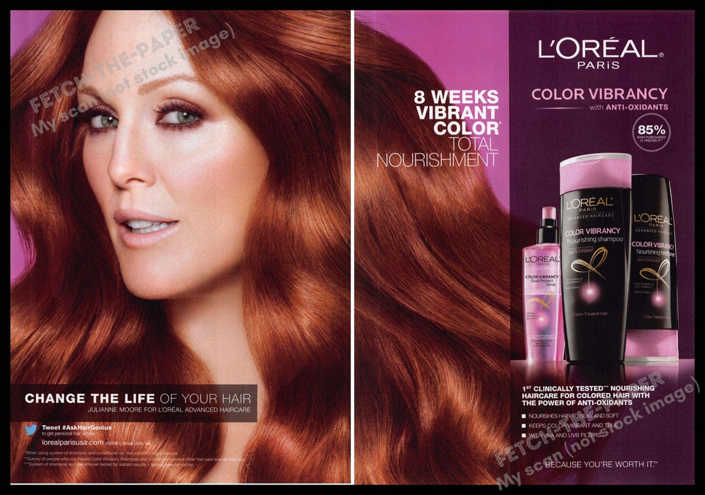 L'Oreal 2010s Print Ad (2 pg) 2013 Julianne Moore "Change the life of your hair"