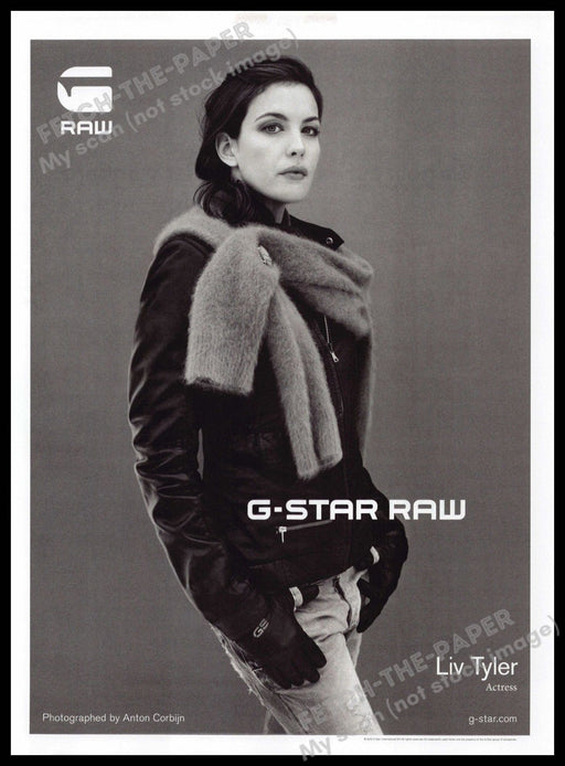 This G-Starr Raw magazine advertisement from the 2010s features actress Liv Tyler, captured by renowned photographer Anton Corbijn. The black and w...