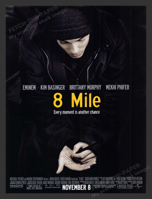 This vintage print ad from the early 2000s promotes the release of the iconic movie "8 Mile," starring Eminem, Kim Basinger, Brittany Murphy, and M...