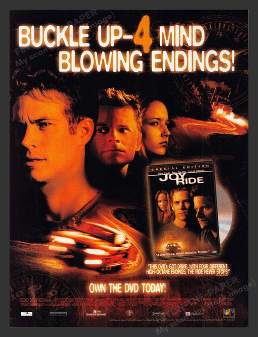 This captivating print ad from the 2000s promotes the release of the movie "Joy Ride" in 2002. Featuring prominent actors Paul Walker, Steve Zahn, ...
