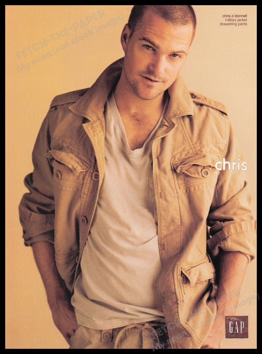 This 2007 print advertisement from Gap features Chris O'Donnell showcasing a stylish military jacket paired with drawstring pants. The ad captures ...