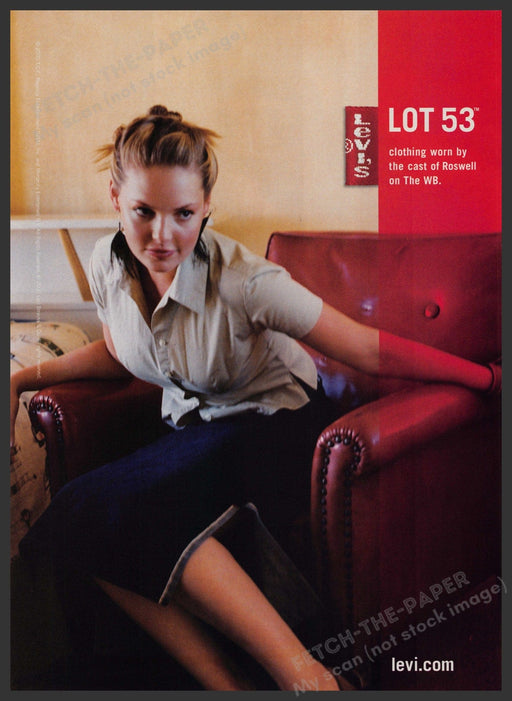 This vintage Levi's advertisement from the 2000s features a stylish portrayal of actress Katherine Heigl, known for her role in the TV show "Roswel...