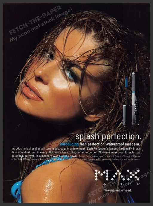 This stunning 2006 Max Factor print advertisement features Carmen Electra showcasing the brand's Waterproof Mascara. The ad captures Carmen with we...